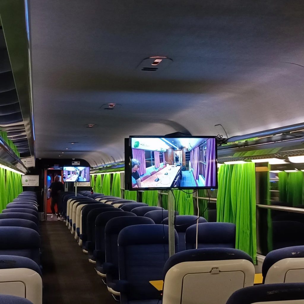 demos vida a um live streaming no comboio intercidades entre Lisboa e a Covilhã, com a transmissão do mesmo em cinco carruagens com recurso a 16 lcd´s.